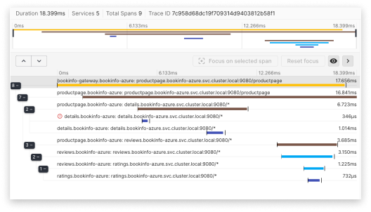 Enhance system performance, accelerate issue resolution, and boost reliability by aggregating metrics, including distributed traces, logs, and RED metrics, across Kubernetes clusters for a comprehensive view of application health.